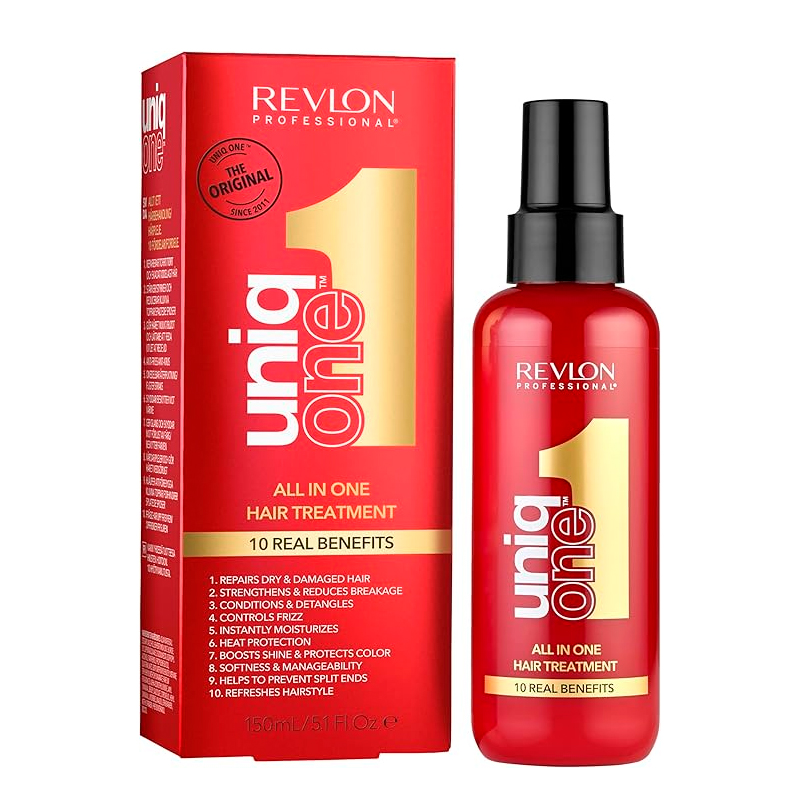 O Leave-in Revlon Uniq One réune tudo que você precisa em um único produto para tratar os seus cabelos. Uma vez em ação, este Leave-in Revlon oferece: proteção térmica, solar e contra o desbotamento da cor, controle do frizz e do volume, repara os fios danificados, condiciona, desembaraça, facilita o uso da escova e da prancha, e previne as pontas duplas.